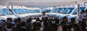 La presidenta municipal Ana Paty Peralta de la Peña agradeció, a nombre de los derechoabientes de Benito Juárez, esta entrega de 20 nuevas ambulancias.