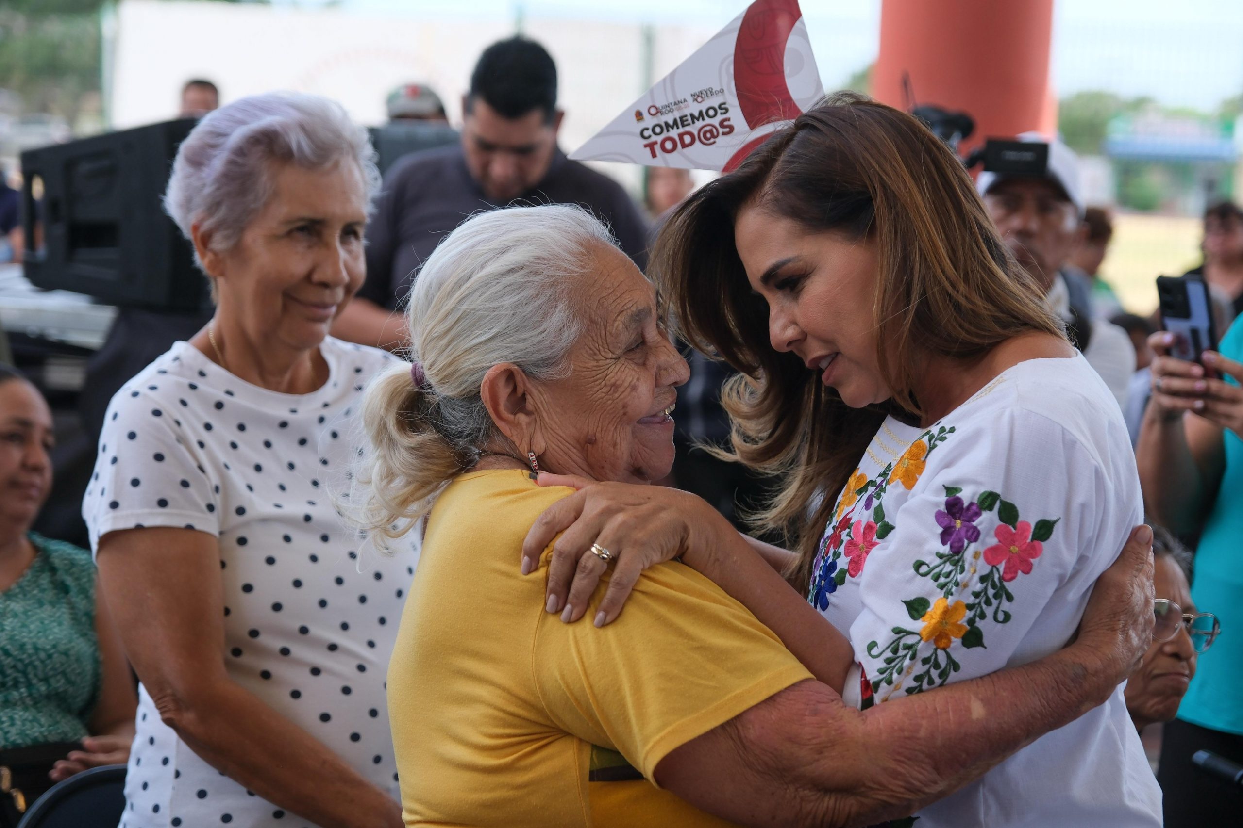 En la unidad deportiva “Toro Valenzuela” de Cancún, la gobernadora Mara Lezama, acompañada de la presidenta honoraria del DIF Quintana Roo, Verónica Lezama Espinosa, y del titular de la SEBIEN, Pablo Bustamante, entregó 700 tarjetas y paquetes alimentarios a beneficiarias y beneficiarios de este programa.