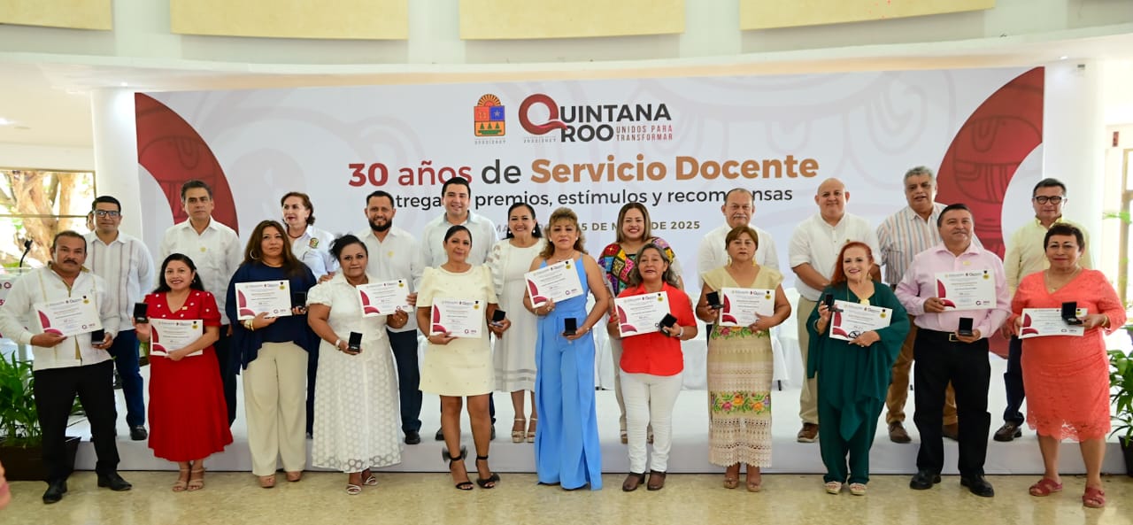 Chetumal.- En el marco de la conmemoración por el Día de la Maestra y el Maestro, la Secretaría de Educación de Quintana Roo (SEQ), entregó premios y estímulos a 278 docentes con 30 años de servicio en el magisterio, de los cuales 107 son hombres y 171 mujeres, quienes además recibieron la medalla “Rafael Ramírez”, en evento realizado en el Centro Social Bellavista.