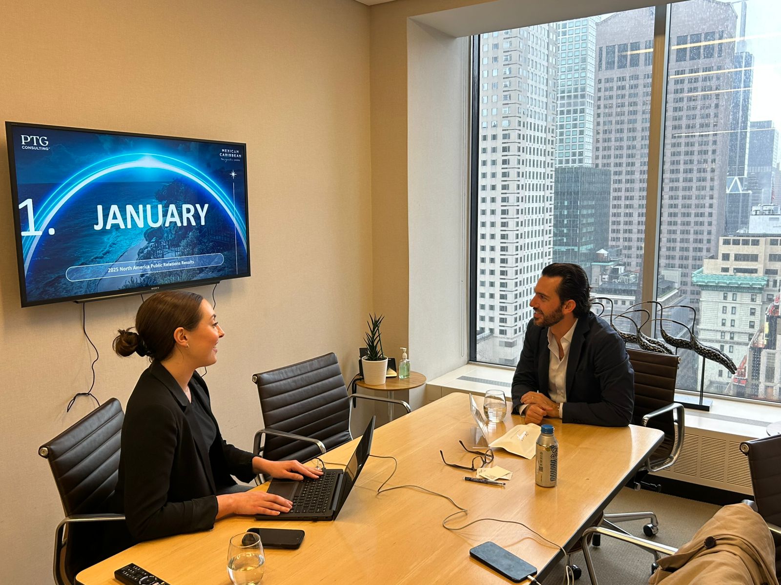 La gira inició en la ciudad de Nueva York con la participación en el anuncio oficial a inversionistas de Wall Street y medios estadounidenses de Perfect Day México, el nuevo proyecto de Royal Caribbean Group, dado a conocer en Quintana Roo por la gobernadora Mara Lezama Espinosa en octubre del 2024.