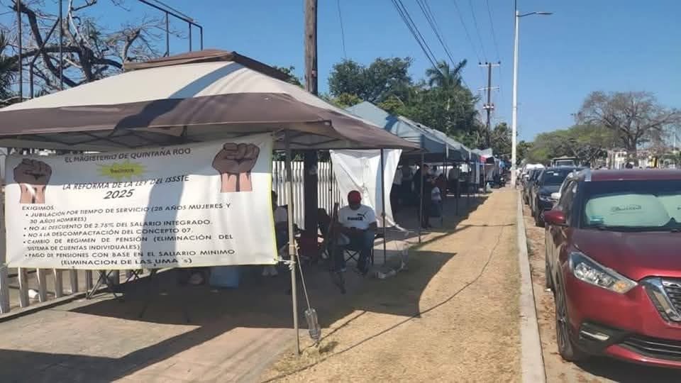 Durante este tiempo, maestras y maestros de distintos municipios se habían instalado con casas de campaña y lonas frente a la SEQ en Chetumal, en demanda de mejoras laborales y ajustes al sistema de pensiones, entre otros puntos.