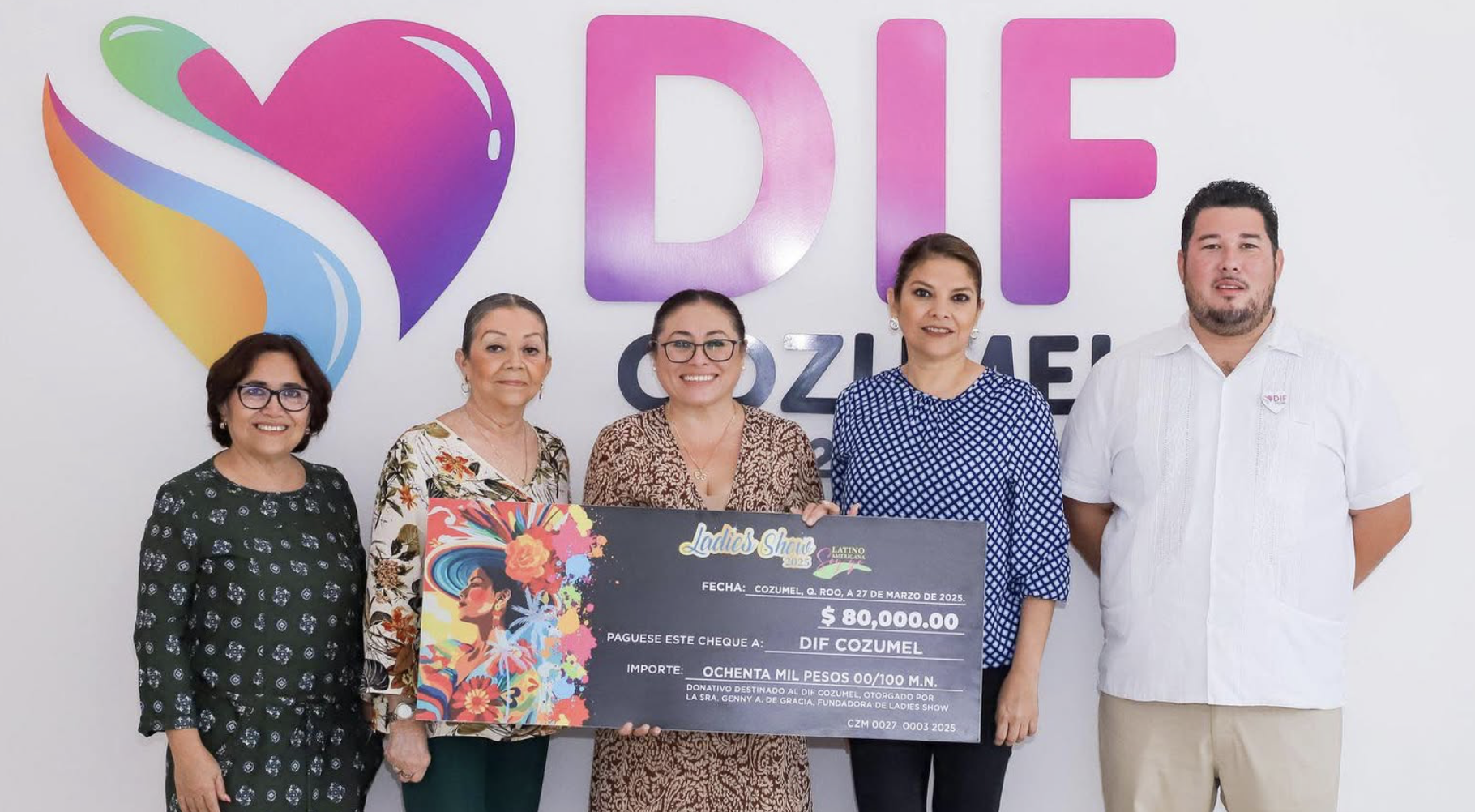 – La mañana de este martes, la presidenta honoraria del Sistema DIF Cozumel, Diana Sosa Blanco, recibió un donativo por parte de las organizadoras del emblemático evento carnavalero “Ladies Show”, mismo que será destinado para la adquisición de equipo e insumos para los Centros de Desarrollo Infantil (CENDIS).