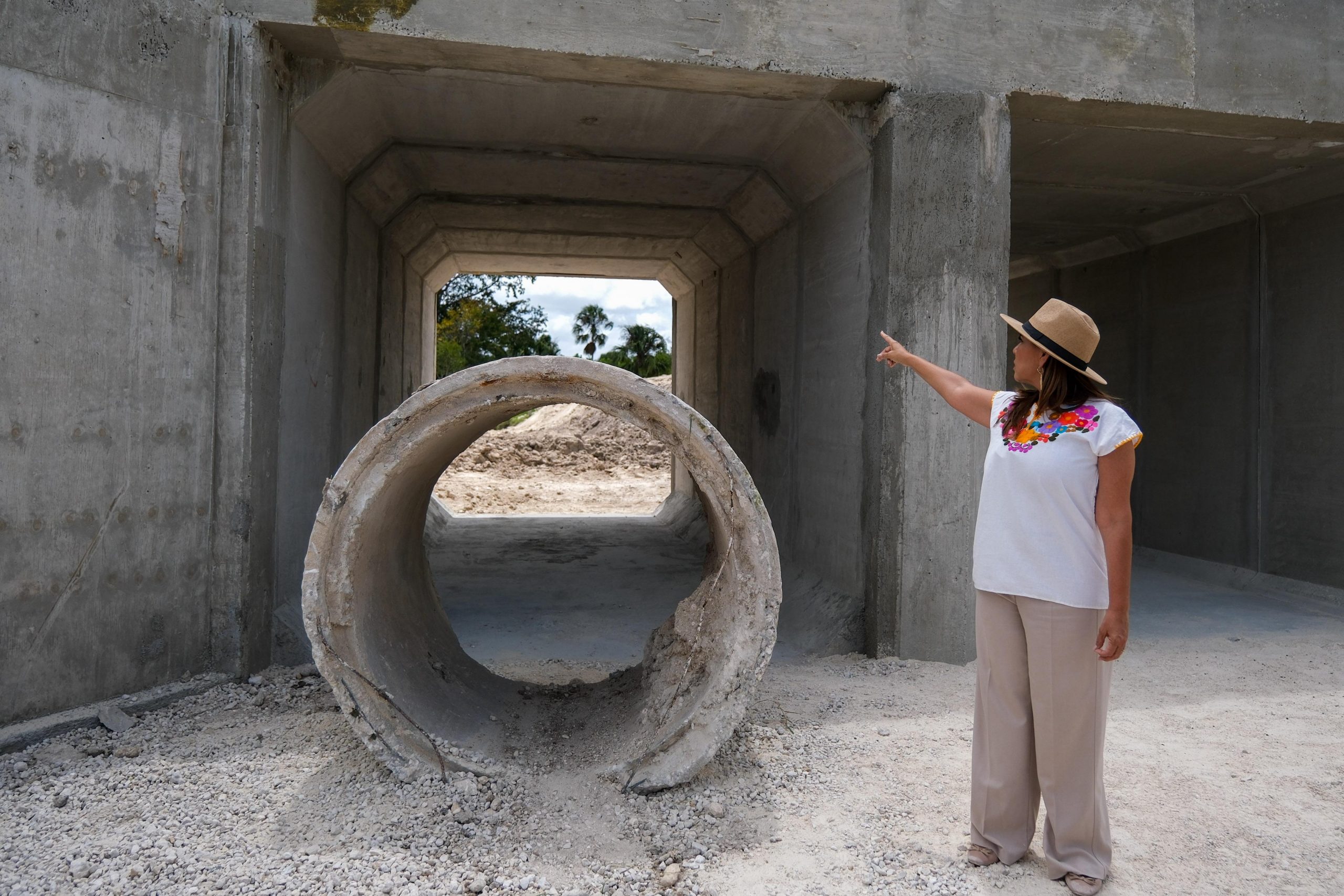 Nuevo Canaán.- Para que las obras se hagan bien y a la primera, la gobernadora Mara Lezama Espinosa regresó a Nuevo Canaán, comunidad de Othón P. Blanco, para hacer una nueva supervisión a la construcción del nuevo puente con amplias bocas de tormenta que evitarán deslaves.